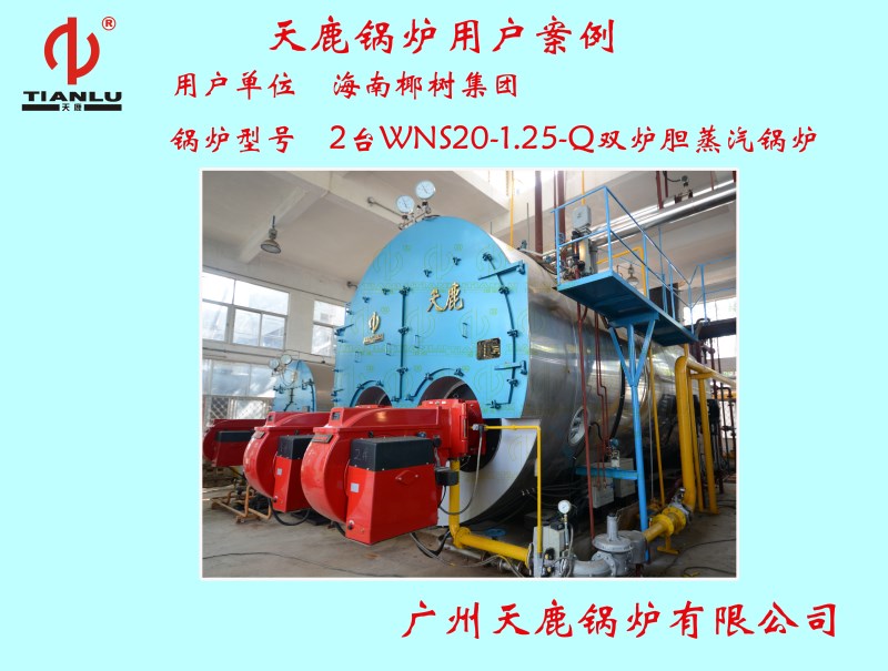 椰樹集團2臺WNS20-1.25-Q雙爐膽蒸汽鍋爐